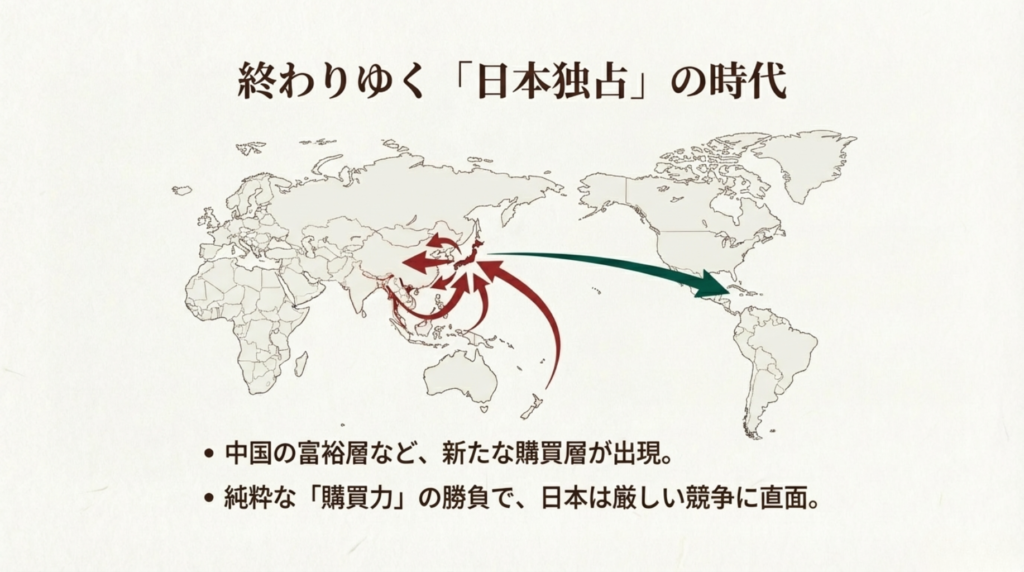 かつては日本企業が現地に行けば、一番良い豆を優先的に回してもらえました。しかし今は違います。中国のバイヤーが現金を持って現れ、「日本よりも高く買う」と言えば、生産者もビジネスですからそちらに売るようになります。長年の信頼関係というアドバンテージはまだ日本にありますが、純粋な「購買力(Buying Power)」の勝負においては、日本はかつての独占的な地位を失い、厳しい競争にさらされているのです。「日本が買わなくても、他が買ってくれる」時代が到来しているわけです。
