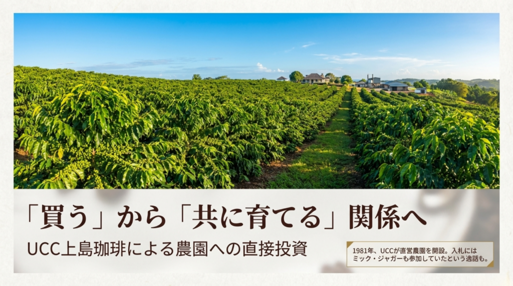 1980年代に入ると、日本の関与は「輸入」からさらに一歩踏み込んだ「生産支援」へと進化します。その象徴的な事例が、日本のコーヒー業界大手であるUCC上島珈琲による直接投資です。