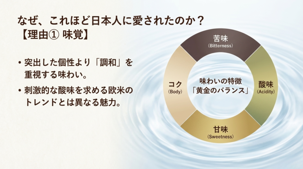 ここまで歴史と経済の側面を見てきましたが、ここからは「味」と「市場の現在地」に焦点を当てていきます。果たしてブルーマウンテンは本当に日本人の味覚に合っているのでしょうか。そして、激変する世界市場の中で、私たちはこれからもこのコーヒーを飲み続けることができるのでしょうか。