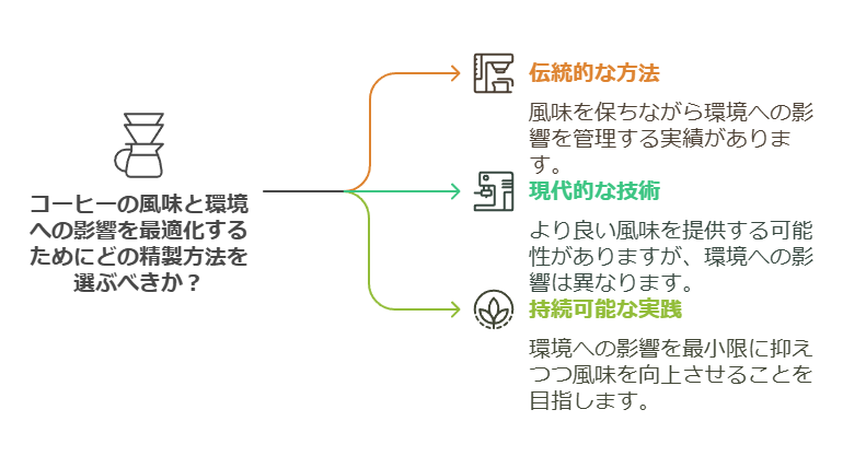 | 生産者 | 品質が安定し、欠点豆が少ない。 | 大量の水が必要で、環境負荷が高い。 |