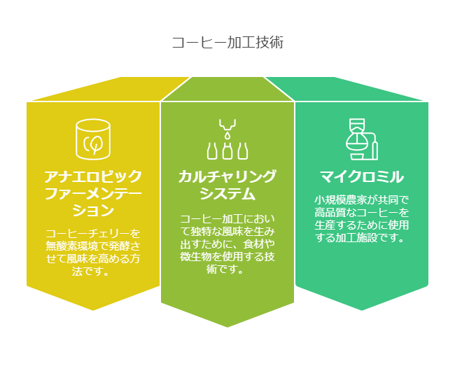 近年、コーヒーの風味を向上させるための様々な精製方法が開発されています。